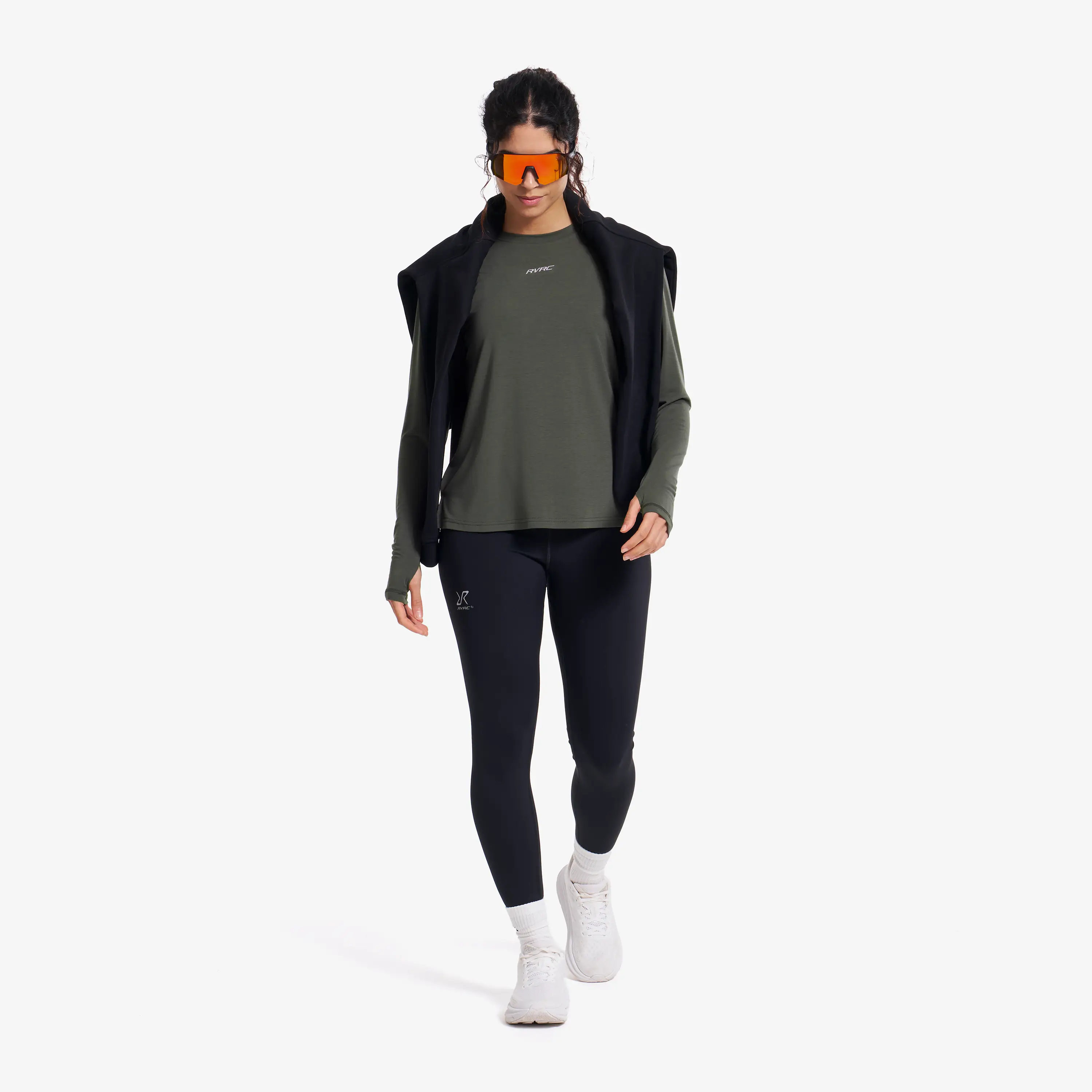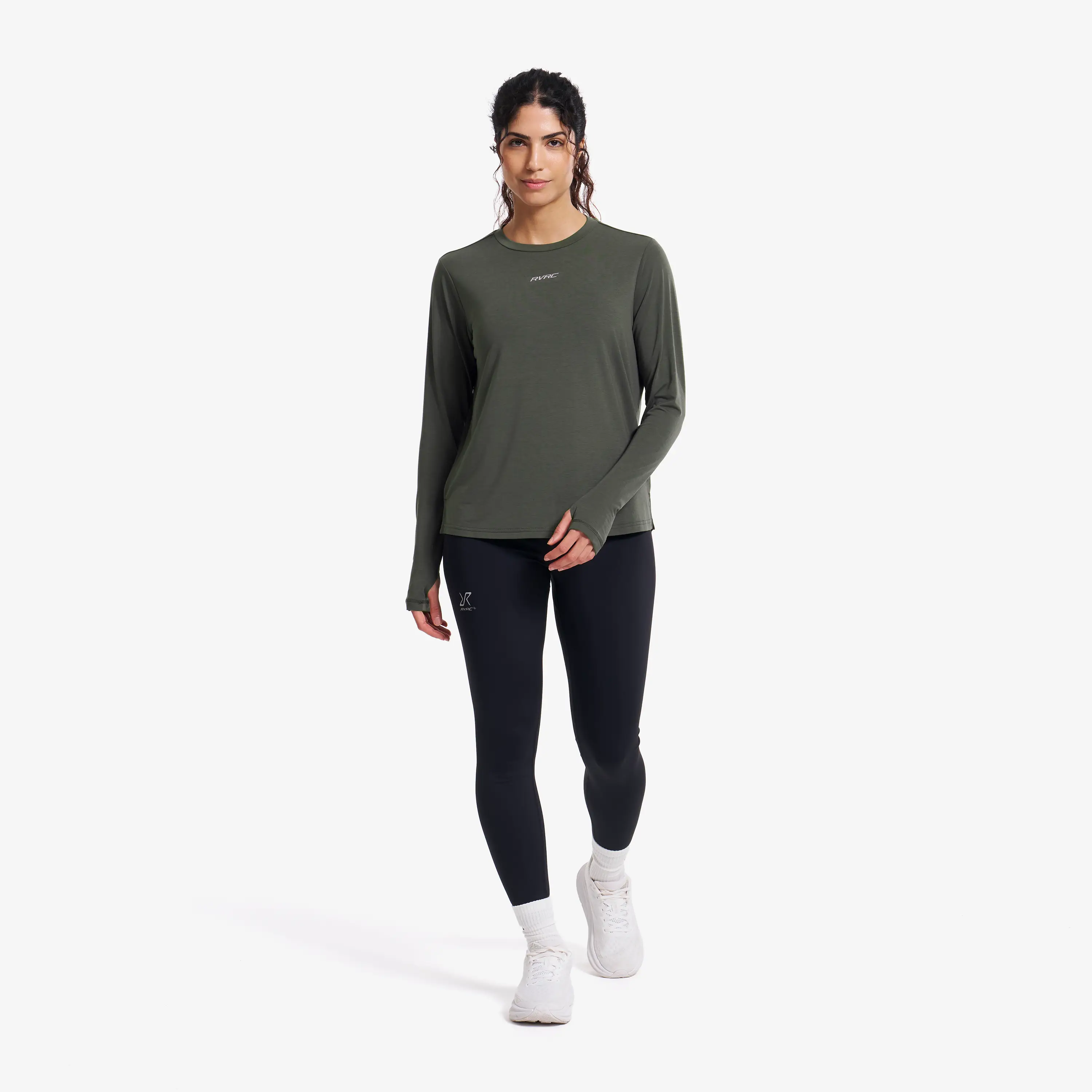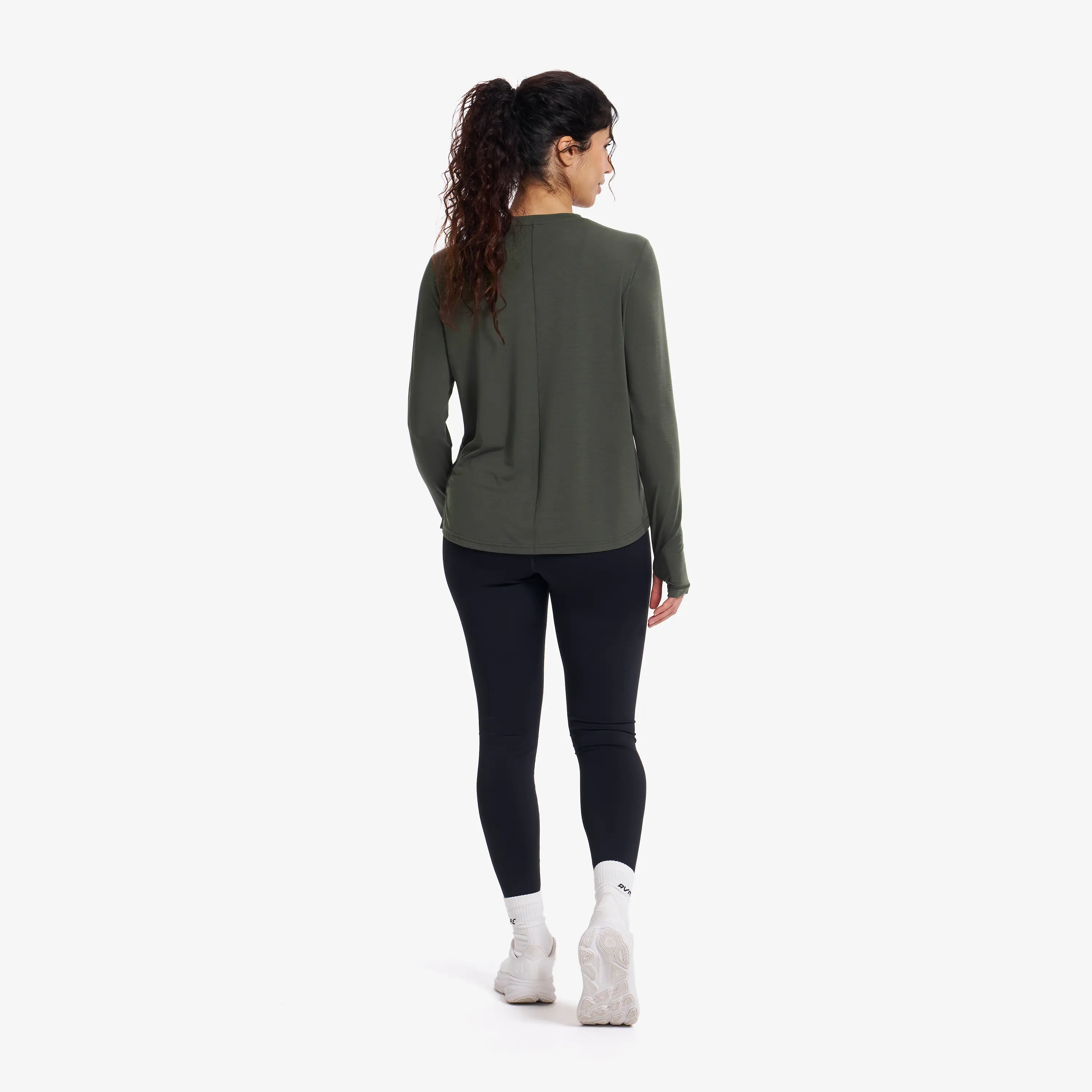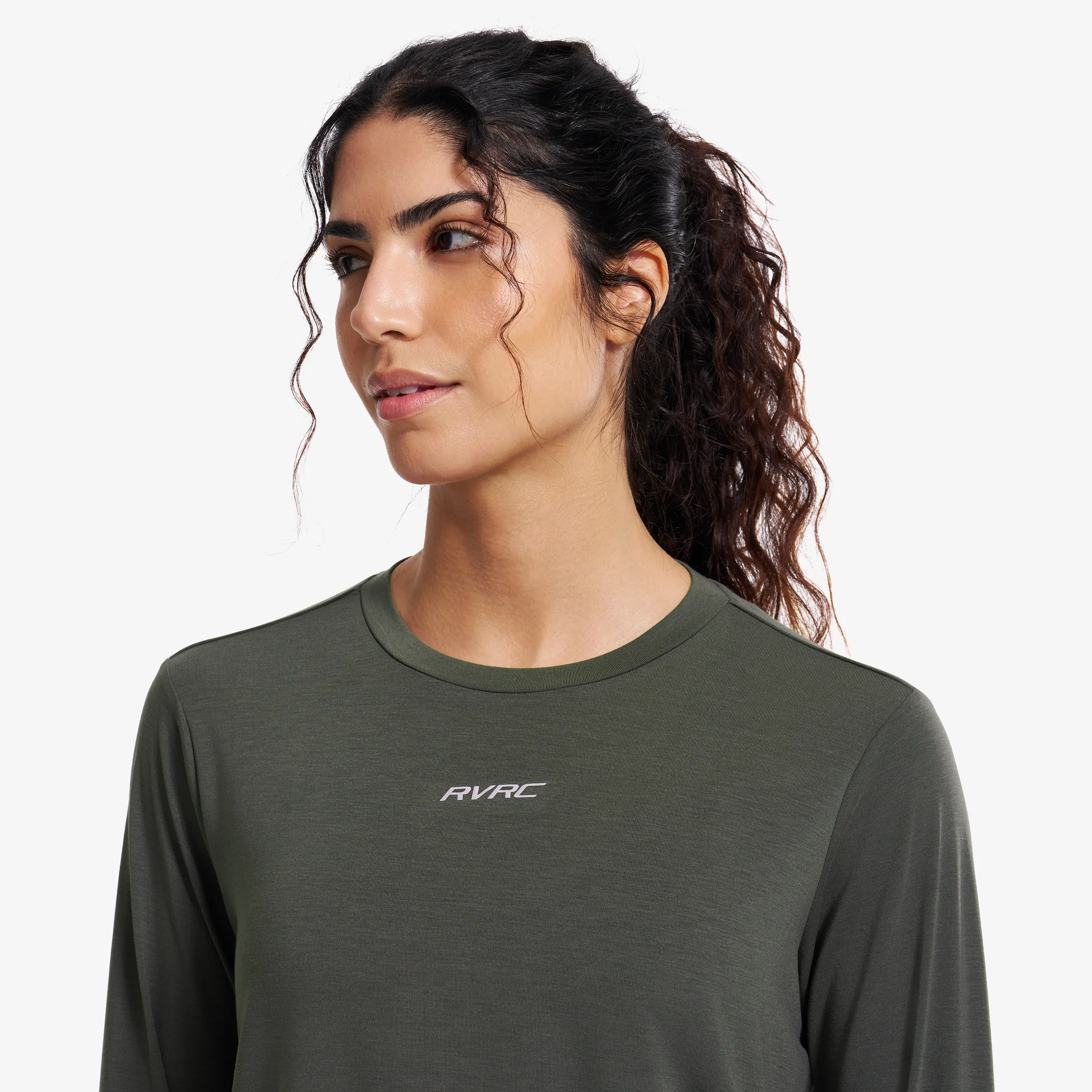Camiseta de manga larga elástica y transpirable para actividades de alta intensidad.